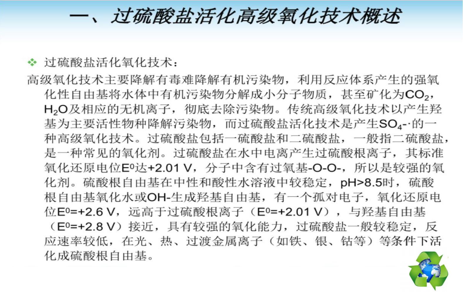 過(guò)硫酸鹽活化氧化技術(shù)原理及應(yīng)用