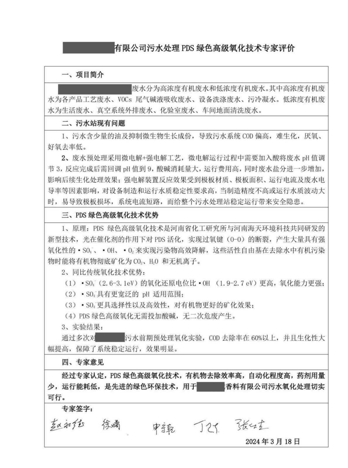 PDS綠色高級氧化污水處理技術